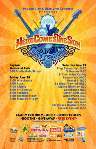 The festival, put on by the Utah Live Concerts Foundation, will feature a host of bands at Payson Memorial Park. The event is free to the public and suitable for all ages.