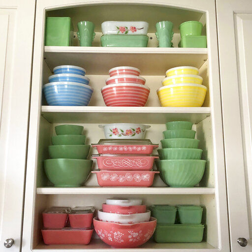 Jo Adinolfi, a 62-year-old nurse from Shelton, Connecticut, collects Pyrex mixing bowls and stackable refrigerator sets, what collectors affectionately call “fridgies.” She started collecting and selling about 10 years ago and owns more than 2,000 pieces.