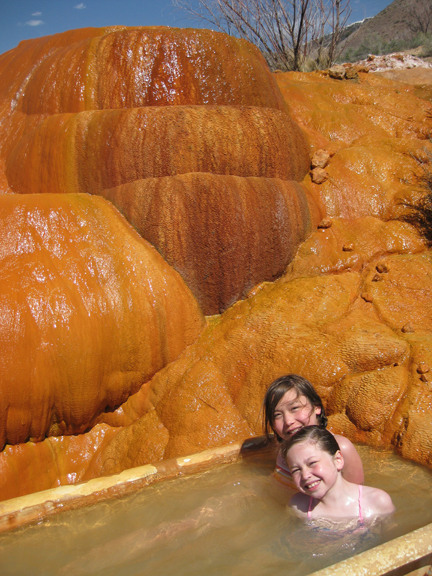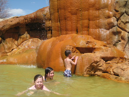 The water is rich in calcium, magnesium and iron. Soaking in it relaxes warm, achy muscles. I could swear it softened my skin, too. Millions of years old, the spring flow has created a mile-long mound of mineral buildup that is 200 feet deep and 200 feet wide. The natural minerals form unique, red rock formations that serve as the backdrop for the cascading water pools.