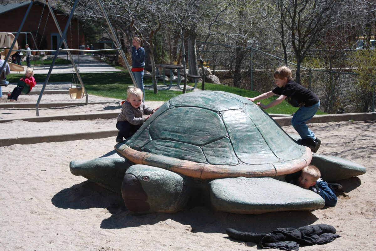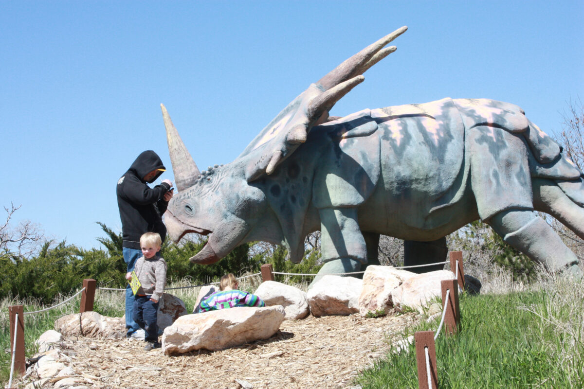 However, there is a playground, featuring dinosaur slides and creatures to climb on and explore. Benches, picnic tables and large trees make it an excellent site for a picnic lunch. An indoor museum featuring fossils and other artifacts is part of the park as well.