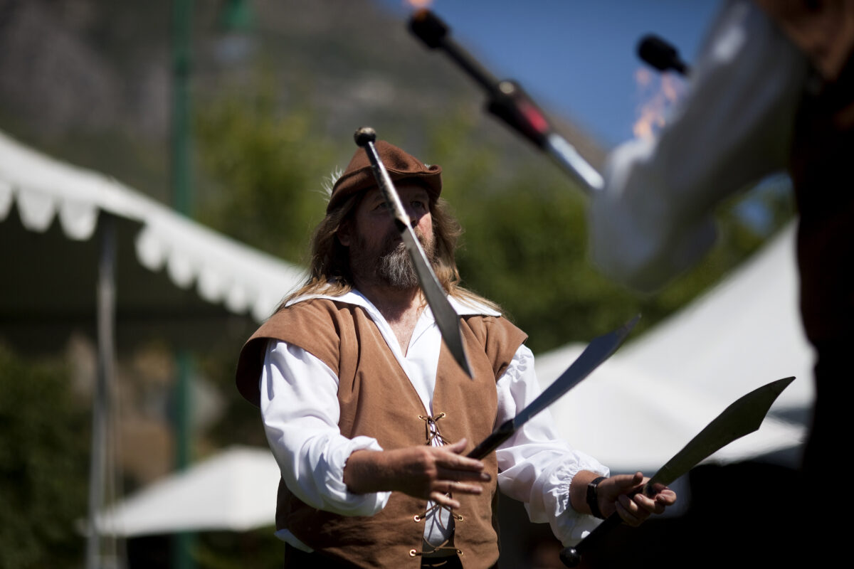 Juggler Brent Jensen, who’s one-half of the performing duo Jugglenutz, said that he and partner Mark Nelson have been tossing torches, knives and just about anything else you could imagine at the festival almost since it began. “We thought we’d go help them out one time,” Jensen said.