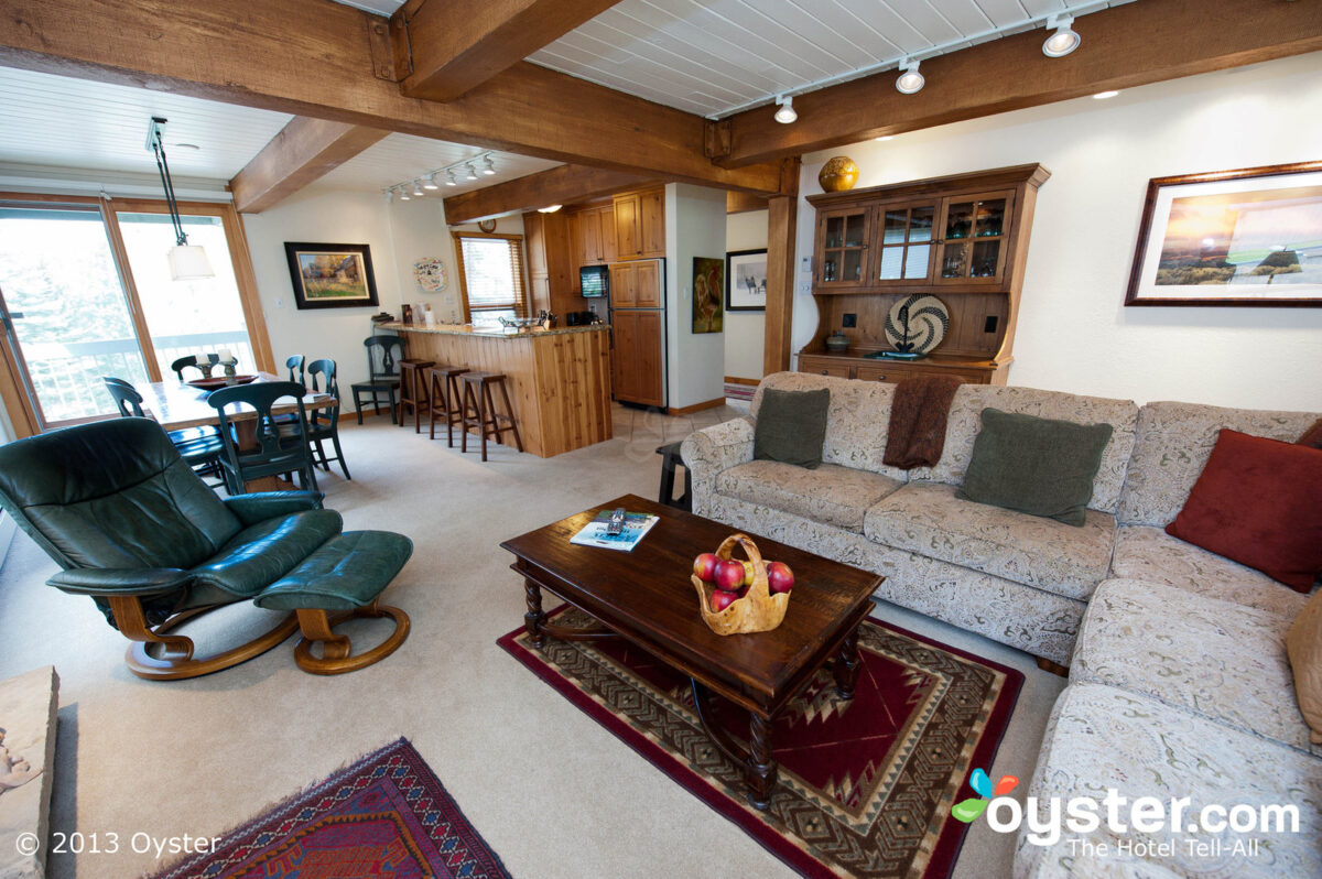 In keeping with its name, Teton Mountain Lodge’s 145 condo-style rooms and common areas have a distinct mountain-lodge vibe. If the rooms weren’t amply supplied with up-to-date amenities such as flat-screen TVs, iPod docks and new appliances in the kitchens, you might feel as if you were staying in your own remote log cabin. Being that most nearby restaurants and bars are expensive, the full kitchens in most rooms (all but the Lodge Rooms) help to combat the high prices. All areas of the hotel are cozy, including the beautiful lobby, with its two tall, towering stone fireplaces and exposed wooden beams. All guests have full access to the Solitude Spa facilities: two pools, five whirlpools (great for sore post-ski muscles), steam rooms and a nicely equipped fitness center.