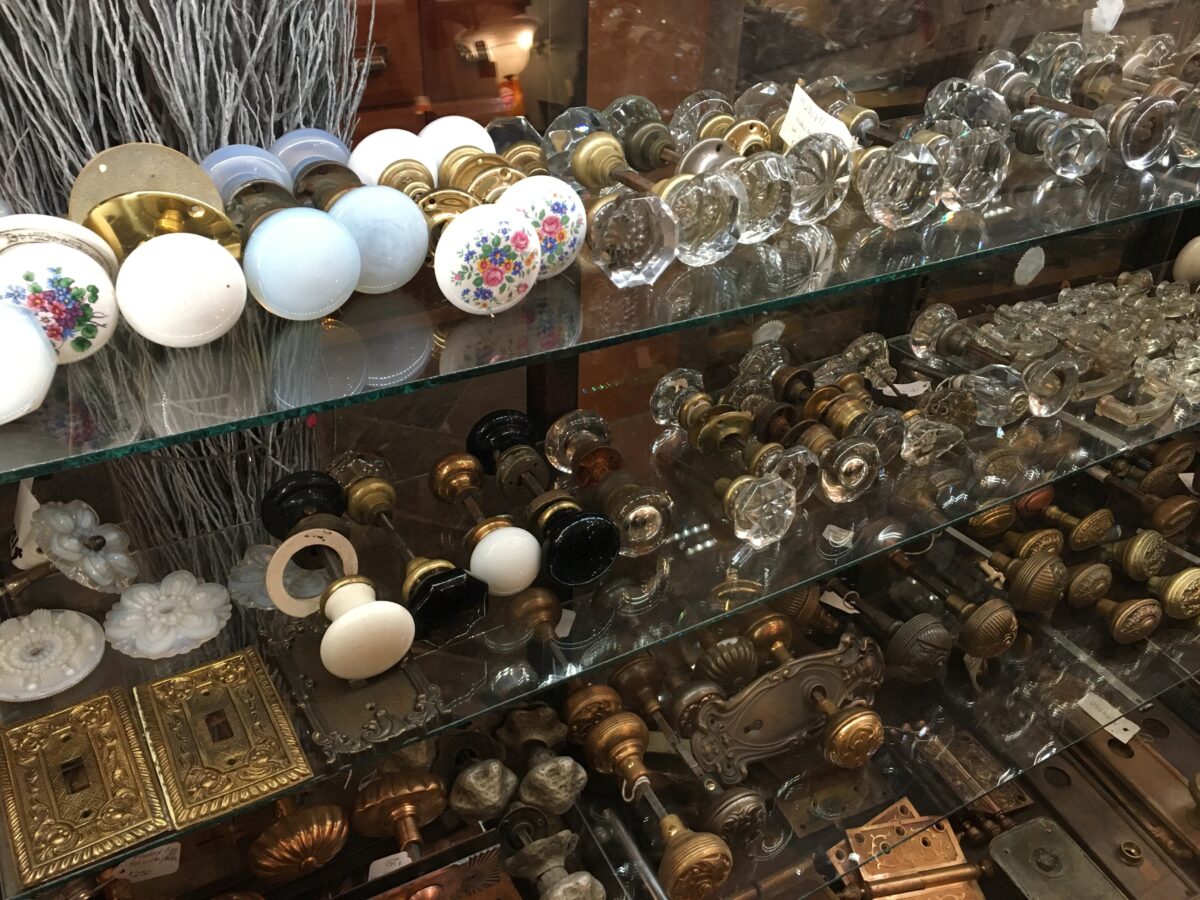 Olde Good Things sells everything from vintage doorknobs to huge stained-glass panels that were once part of the American Airlines terminal at John F. Kennedy Airport in New York. There are enormous chandeliers that once hung in a Broadway theater, and, from the old Waldorf-Astoria Hotel, dishes, fireplace mantels and the elegant doorframe of the historic hotel’s presidential suite.