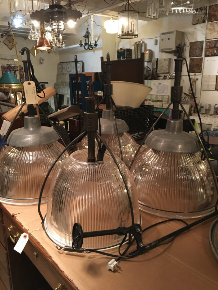 While some items are sold just as found when they were salvaged from renovation sites, others have been modified for home use. There are Paris street lamps reconfigured as large pendant lamps to hang above kitchen islands or in loft apartments, and window frames from historical buildings like New York City’s Domino sugar factory or Flatiron building, now fitted with mirrors to be hung on walls. Tin ceiling tiles from old New York buildings are also sometimes fitted with mirrors, or framed and hung as is, says Beauchamp.