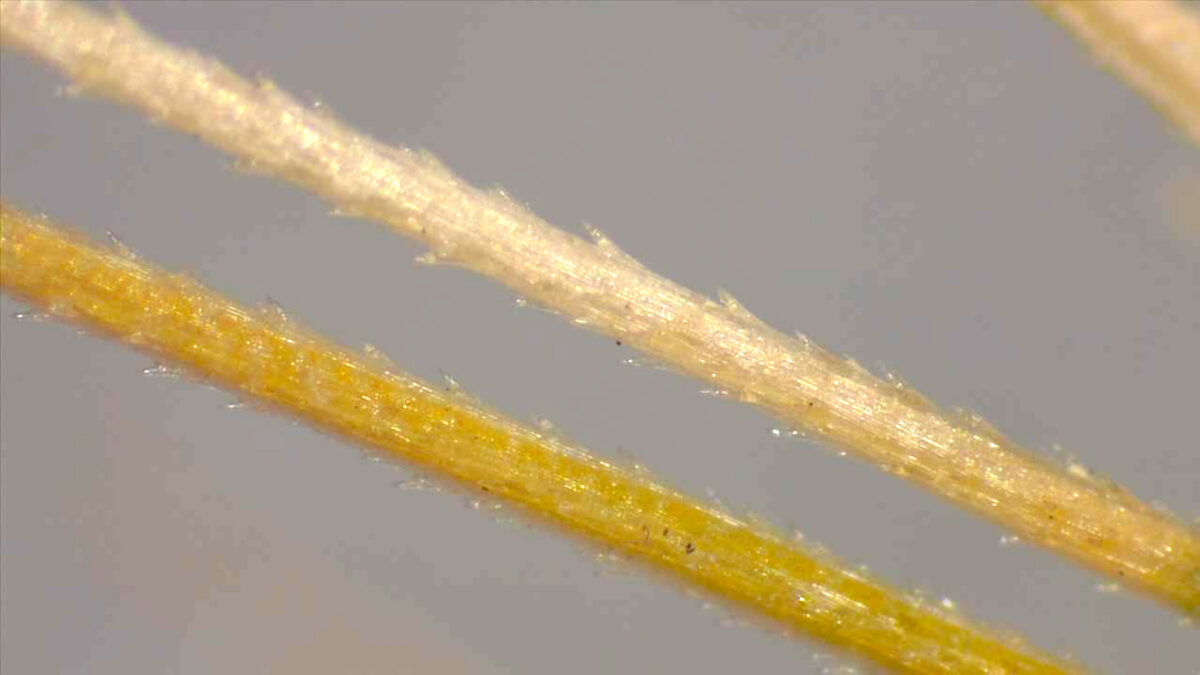 Foxtail awns, the bristles that angle backward on the seed, are covered with tiny barbs that prevent the awn and seed from moving backward. These barbs are the reason it is so hard to pull out a foxtail once it become embedded in a pet's skin or fur.