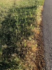 Just like other weeds in lawns, foxtails often show up first at the edges where they can get an easier foothold.