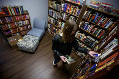 Kelise Atwood, of Saratoga Springs, puts a book back on the shelf as she browses different titles Wednesday, Jan. 2, 2019, at HideAway Books in American Fork. The used-book store is located at 8 E. Main St. Isaac Hale, Daily Herald