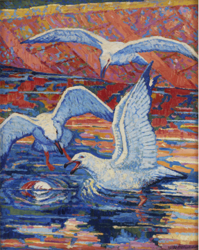 “Seagulls on Utah Lake” by Phillip H. Barkdull. Photo courtesy of Springville Museum of Art