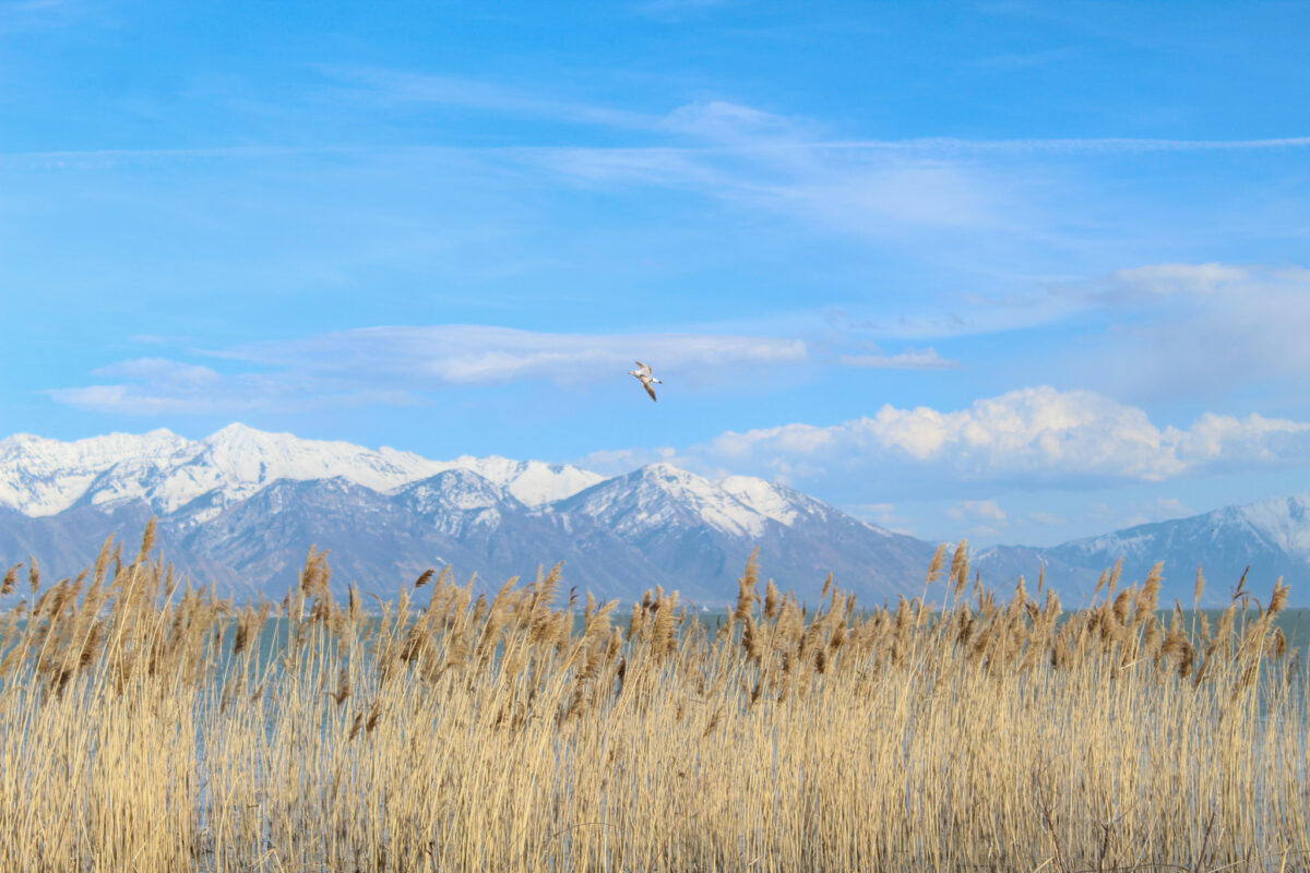 - Seagull flies across Utah Lake near Inlet Park in Saratoga Springs on April 22, 2024.
