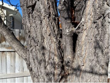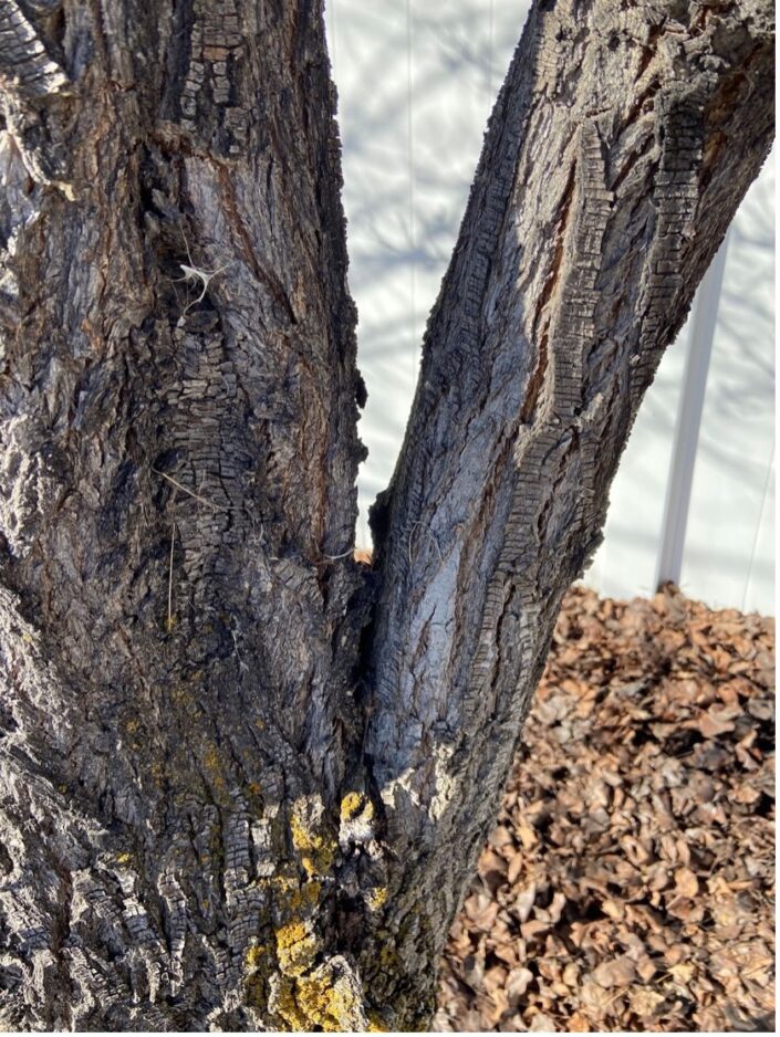 One characteristic of the Bradford pear is very narrow branch angles like the one seen here. These crotches are weak and prone to breakage.
