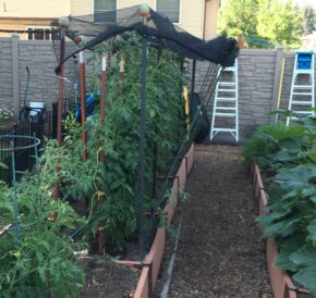 Consider using shade cloth over the most heat-sensitive plants in your garden if we have extreme heat again this year. Shade cloth is available in different densities that describe the amount of sunlight the cloth will block. For example, a 20% shade cloth will block 20 percent of the sunlight. Choose 30% shade to provide a few degrees of heat protection while also letting through enough light for good plant growth. As a bonus, shade cloth will also protect tomato and pepper fruits from sunscald.