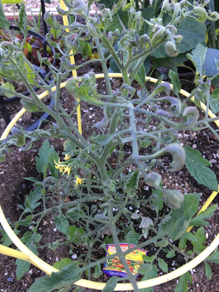 Tomatoes are just one of the vegetable plants and ornamental plants that are very sensitive to herbicide exposure. Follow label directions carefully and protect desirable plants from accidental exposure.