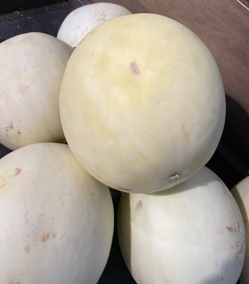 - The pale spot where the melon touches the ground will be yellow instead of white.
