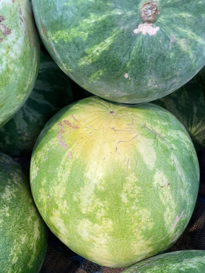 Today, we’ll look at three popular melons for home gardens: watermelons, cantaloupes and honeydews. One characteristic that these melons, and most other melon varieties, share is that they’ll feel heavy for their size when they are ripe. Beyond that, you’ll be looking for different clues with each kind of melon.