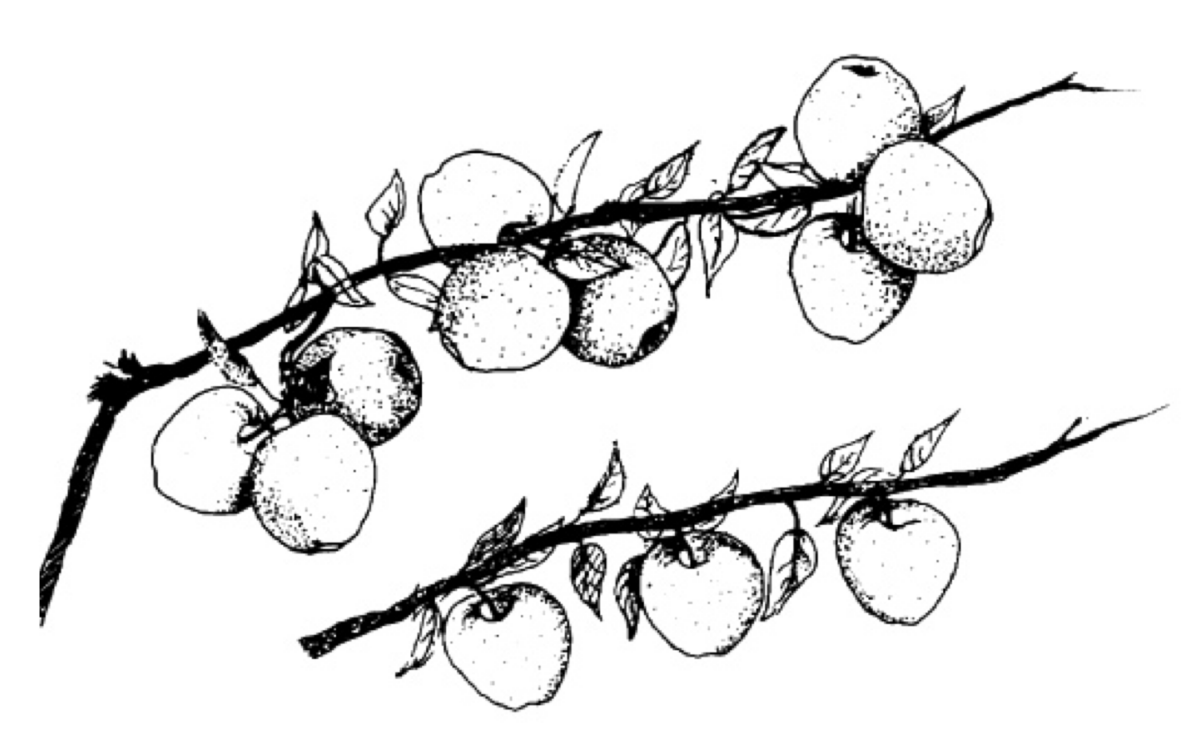 - When enlarging apples like this touch each other, it provides a protected place where female codling moths can lay their eggs.