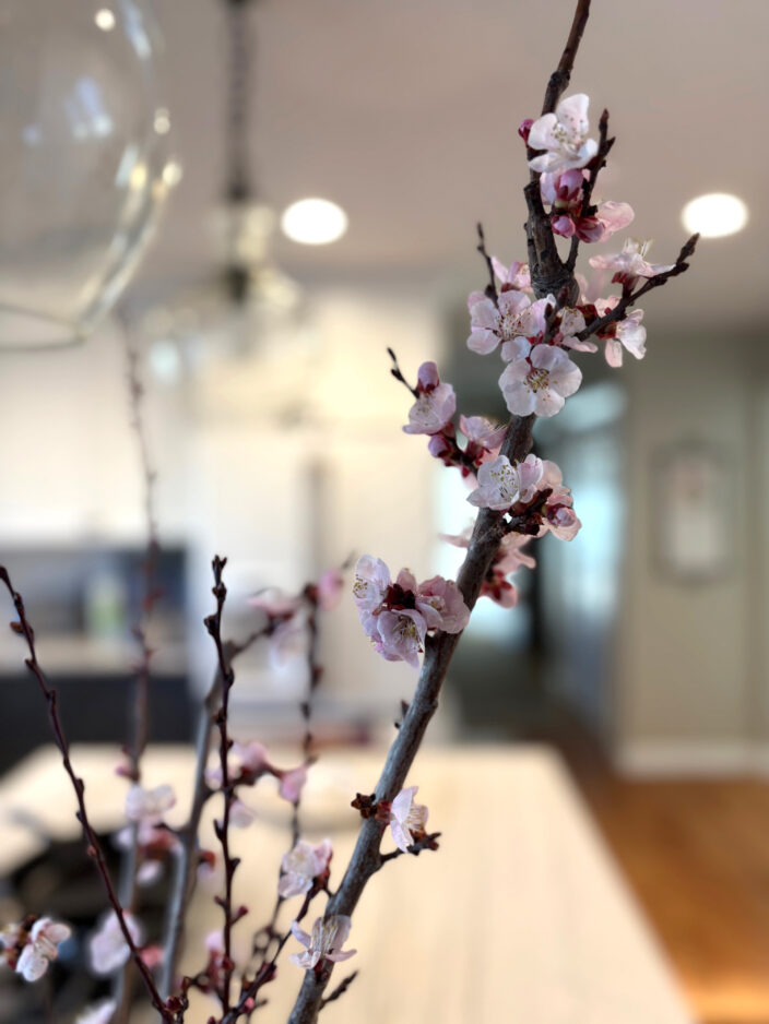 Enjoy some early blooms indoors! Force flowering branches such as quince, forsythia and cherry by cutting thin branches at an angle and bringing them inside. Place them in a vessel with water and change the water every few days to keep it clean. The buds will slowly open and reward you with beautiful blossoms.