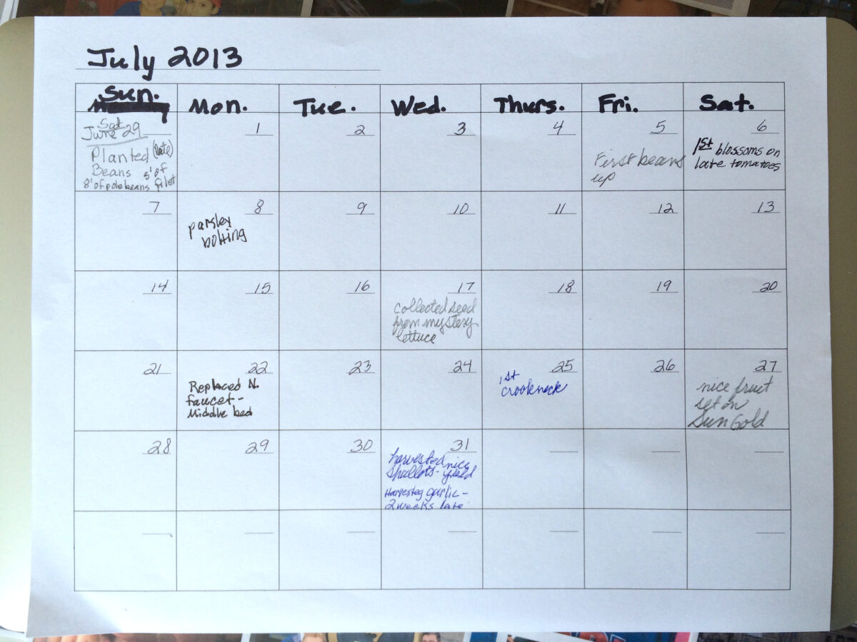 Even a blank calendar page in a handy spot can be used to keep a record each year of what you did and how things worked out in your garden.