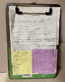 A clipboard kept on a kitchen desk or other convenient place makes it easy to jot down details for seed starting, planting and harvesting.