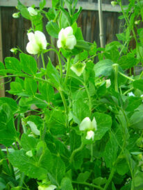 Plant the pea seeds about 1/2 to 1-inch deep and space the seeds 1 inch apart so there will be good air circulation when the plants mature. I soak the peas seeds before planting to give germination a kickstart, but the seeds will also germinate without the soak if the soil isn’t too cold. Planting just some of your peas every week or two will give you an extended harvest, or you can choose two or three varieties with different days-to-harvest. Once you’ve harvested your peas in early summer, you can remove the vines and plant a warm season crop in their place. I like to plant green beans once the vines are gone.