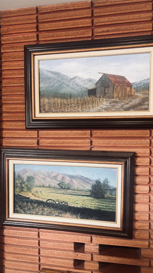 - Two of the paintings done by Gayla Dye that adorn the walls of their home.