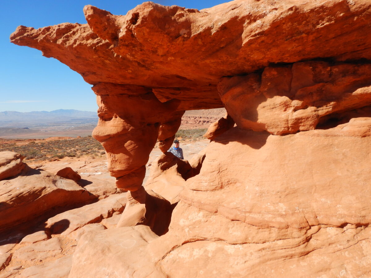 The Flintstone House is a rock structure that resembles a dwelling from the old Flintstone cartoon series. It is a large rock structure with a roof and large windows. It has an entrance and room for four adults. It is so unusual that I had to verify that it is actually a natural structure, as it has a small metal plaque with the words “Flintstone House” high on the northwest side. Anyway, it is popular to have your picture taken looking out from this remarkable edifice.