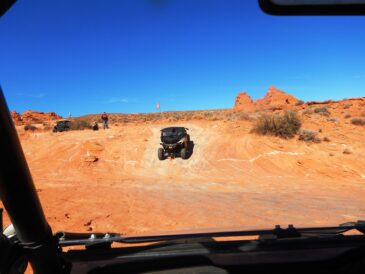 Those of you who are members of the ATV community know that all slick rock is not level and flat. The Hell’s Revenge Trail in Moab is a classic example of not-level slickrock. We came to such a place where the trail featured a steep climb, which was a medium challenge.
