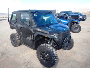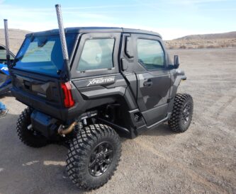 This new machine goes beyond what people are used to seeing in a UTV. This Northstar model comes with heating and air conditioning, sealed and lockable doors, power windows, and a roof with an interior liner that effectively eliminates dust in the cab. There is even an interior light overhead for reading maps in dim light. The windshield is curved and features a power wiper to improve visibility. It tips out into two positions – one that allows airflow through a gap and the fully open position.