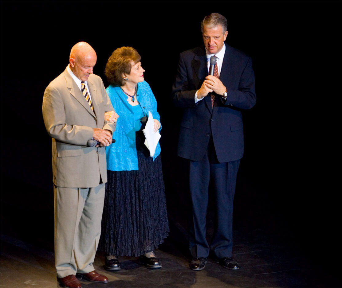 The Coveys were introduced by Provo Mayor Lewis Billings and Kathryn S. Allen, the executive director of the Provo Arts Council. Billings lauded Sandra Covey for her commitment to the arts.