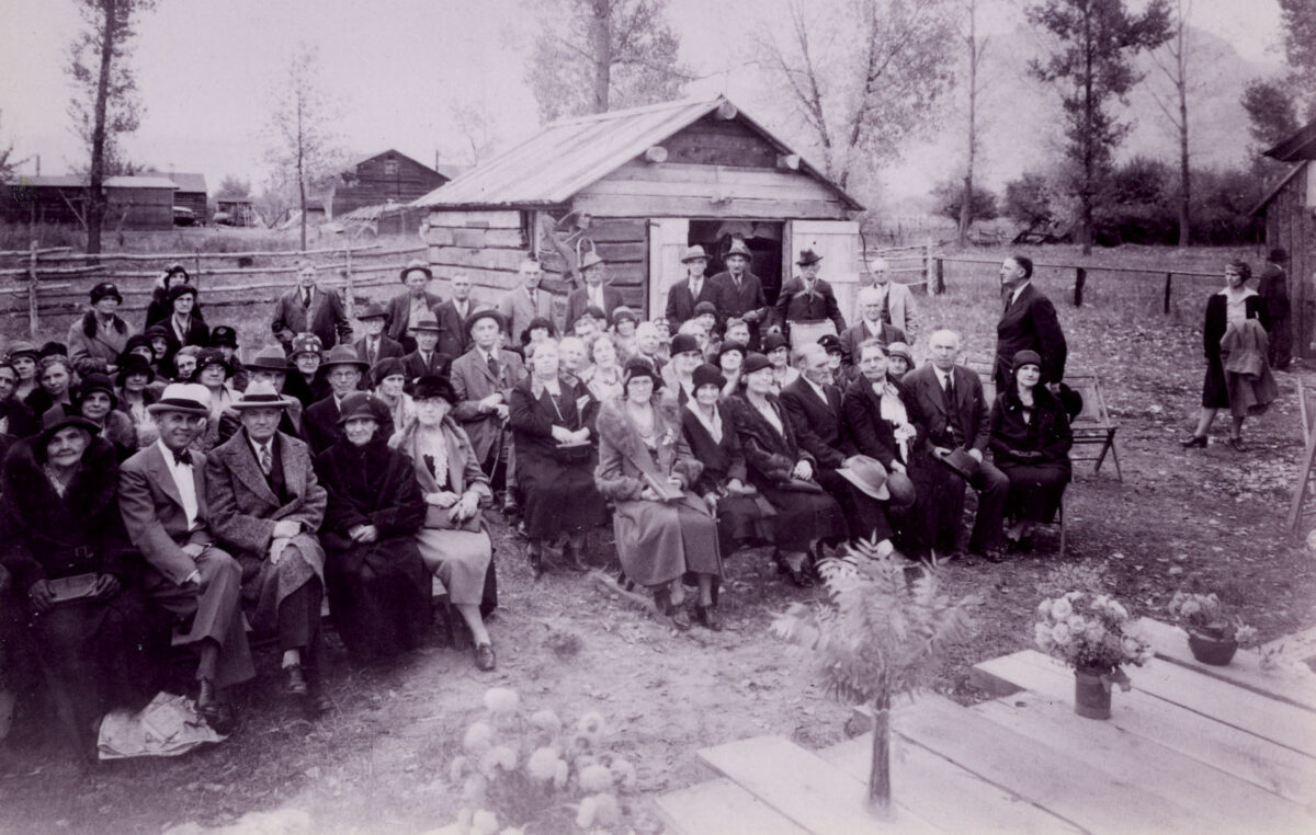 J. Marinus Jensen, author of “History of Provo, Utah,” accompanied Boy Scout Commissioner Roy Passey and a group of Boy Scouts of the Provo District to North Park in February 1933 to view the pioneer farmstead.