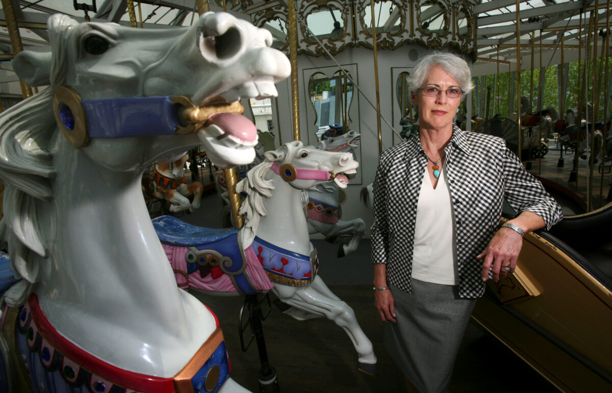 Annemarie Clark, executive director of Clark Creative Group, poses for a photograph in the carousel at Zeum in San Francisco, Wednesday, July 9, 2008. Zeum is an arts and technology museum for children and families.