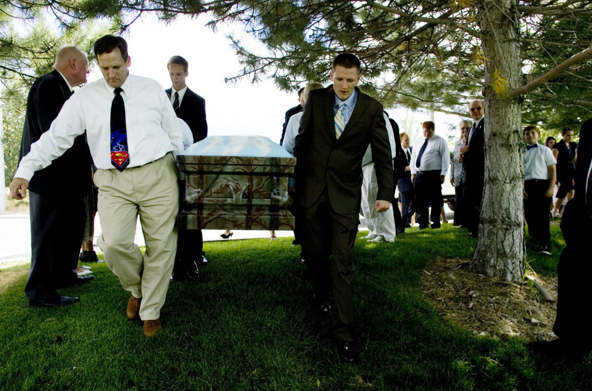 The long-suffering teenager – who, in the words of his father, arrived “like a bolt out of the blue” 18 years earlier with a surprise same-day adoption offer – rode to his final resting place on Wednesday in a custom camouflage-airbrushed coffin in the back of a white GMC Sierra Z71 4×4.