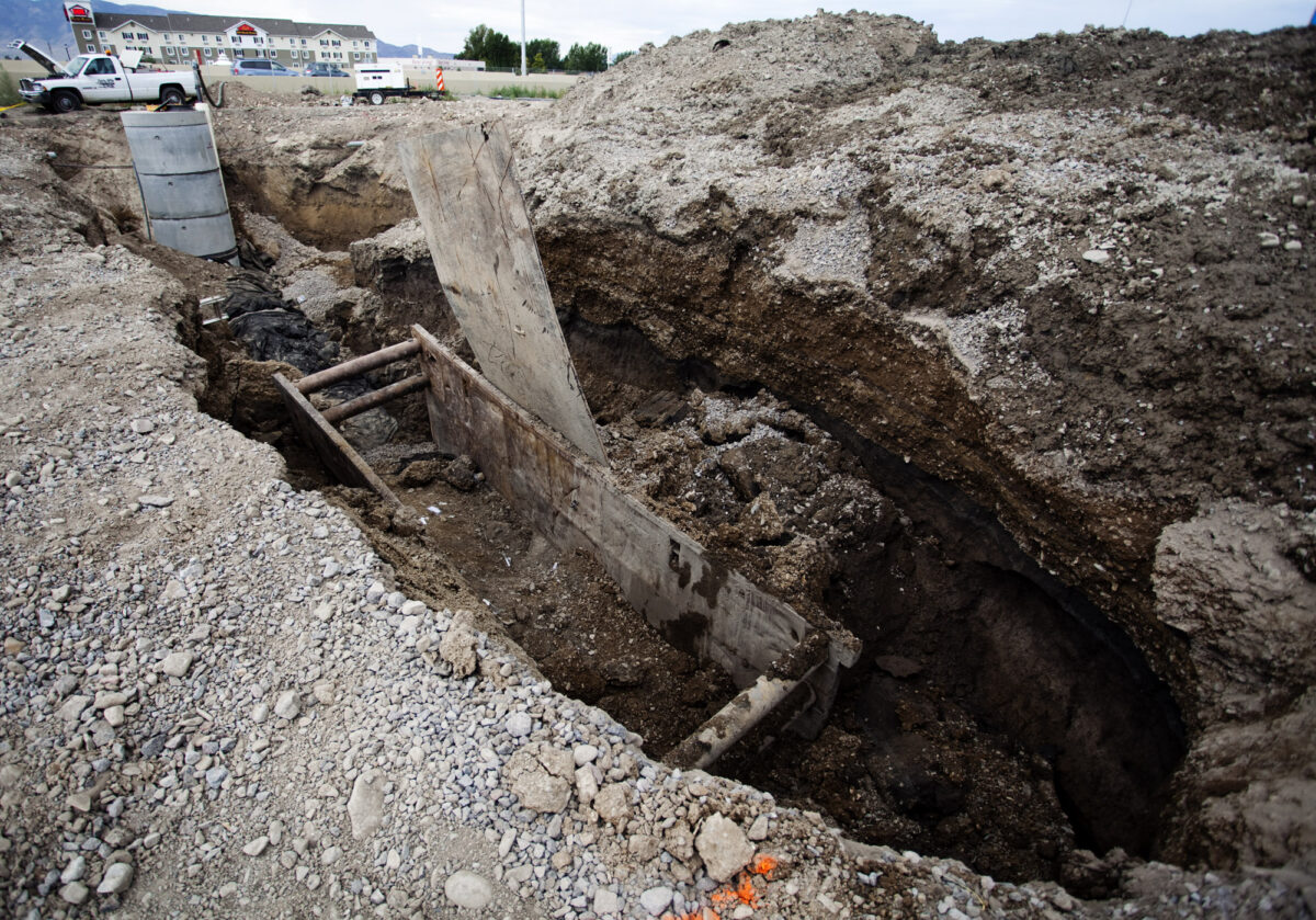 The trench was approximately 15 feet deep. The man was reportedly working to move a trench box, which shores up the sides, from one location to another as the work continued. The area is on the east side of Interstate 15 and west of the Cinemark movie theaters.