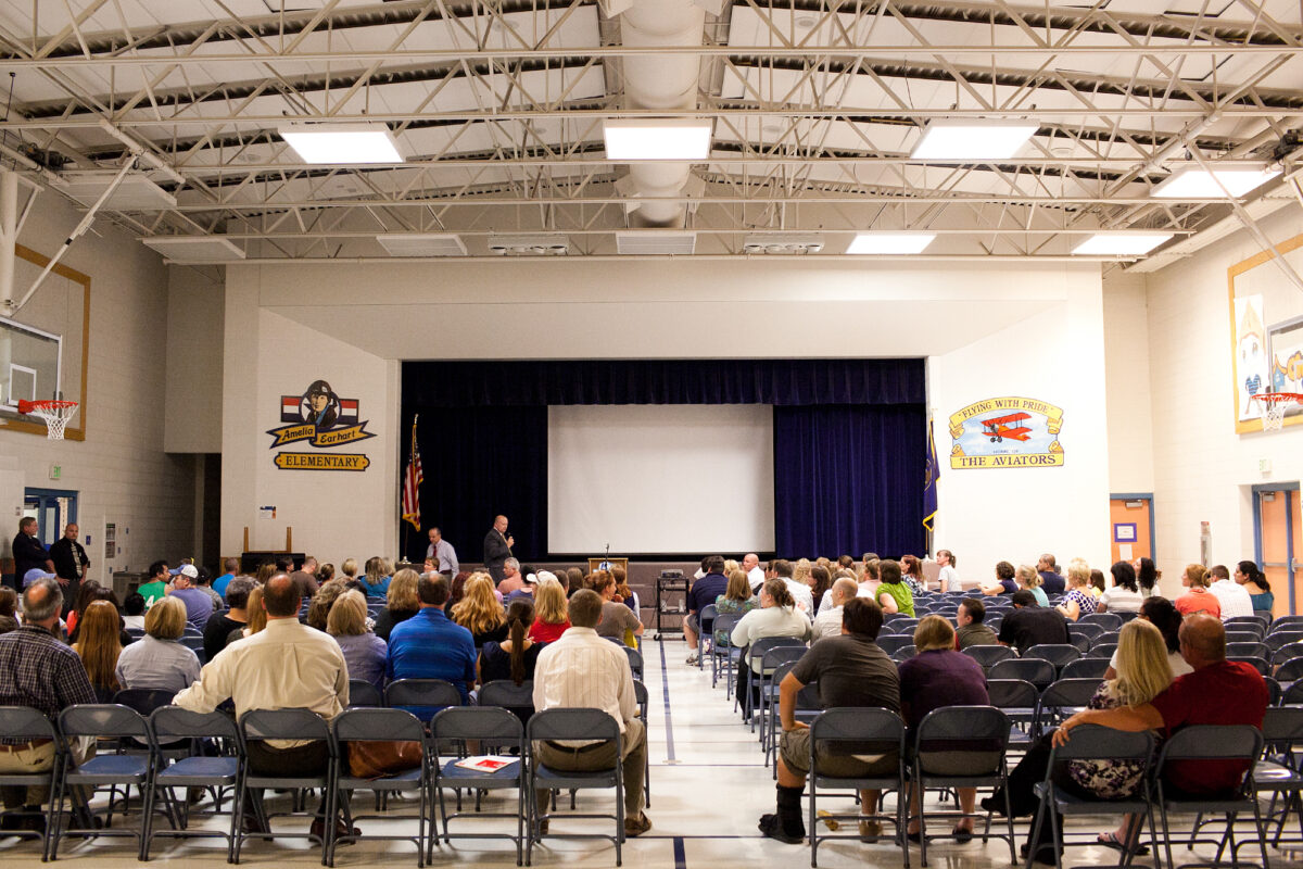 Officials at Wednesday’s meeting — which took place in the school’s gym — also provided a sign-up sheet for parents interested in talking to the police. After the meeting, a group of parents clustered around the sign-up sheet, adding their names. Among them was Veronica Halversen. She said she was hoping to get answers about what happened.