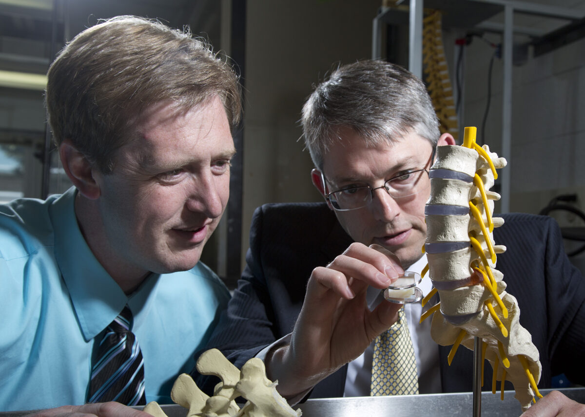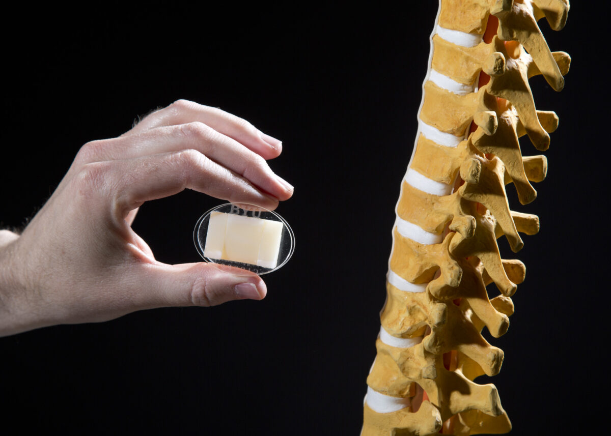 Mechanical engineers Larry Howell and Anton Bowden have developed a spine disc replacement device using flexible strips of titanium that move with the spine just like a natural disc.