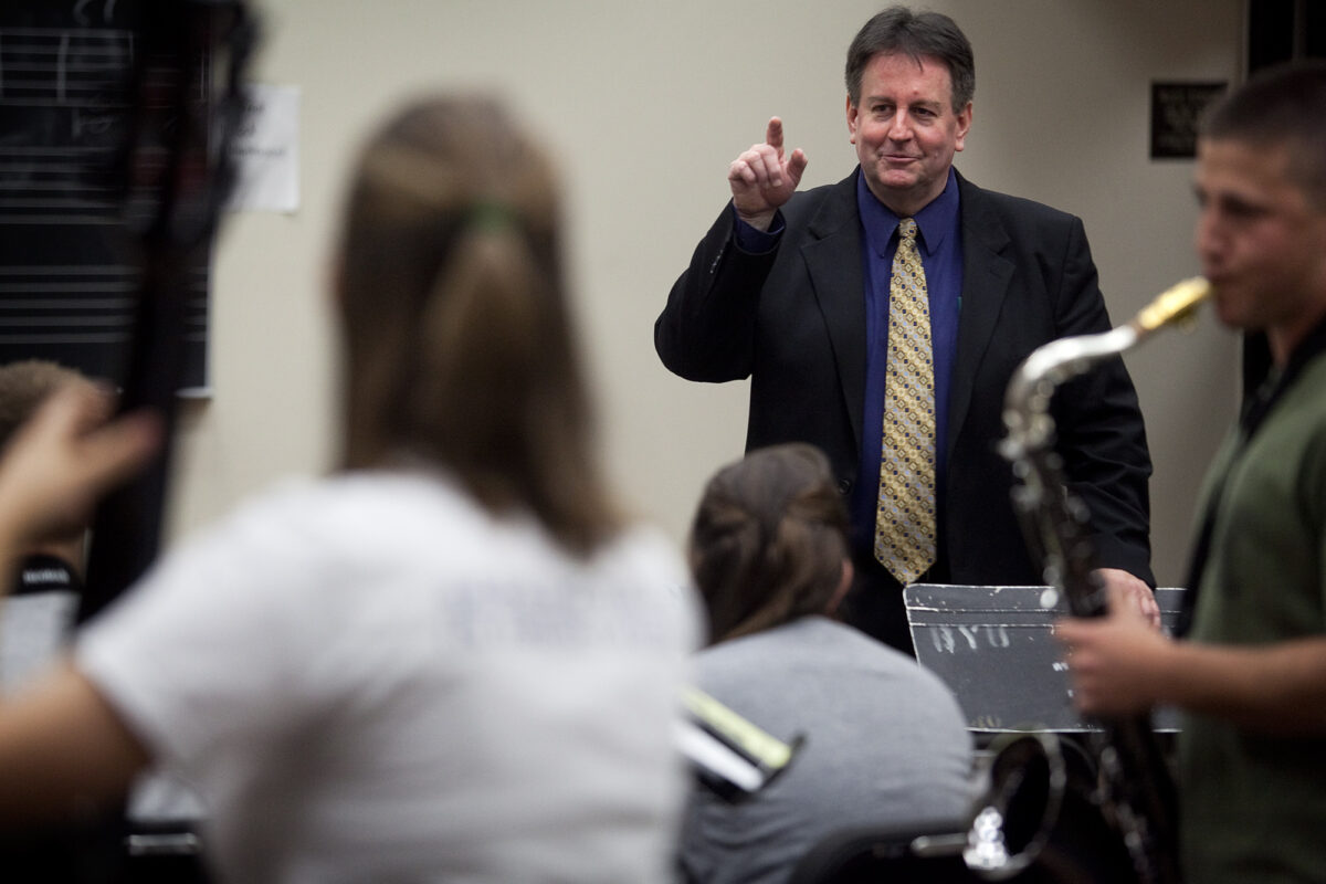 When professional musician Jay Lawrence enters the classroom he’s a few minutes late and a little out of breath. It’s just past 10 a.m. and he jumps right into a lesson with his class in jazz improvisation at BYU’s Harris Fine Arts Center. While some of his students are just starting their day, Lawrence is already well into a busy schedule. He came from private drum lessons that morning and will run to another class after this one.