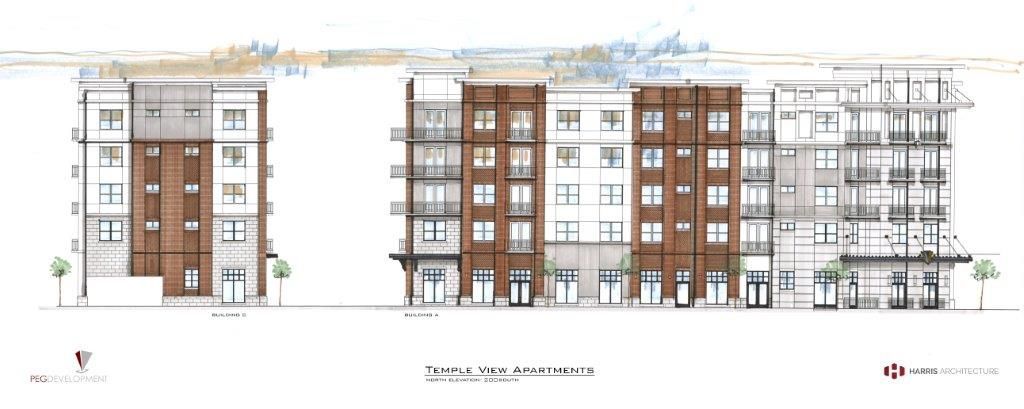 “The style of the architecture is complimentary to the temple,” Halladay said. “They are five stories, with elevators and the units will have 9-foot ceilings.”