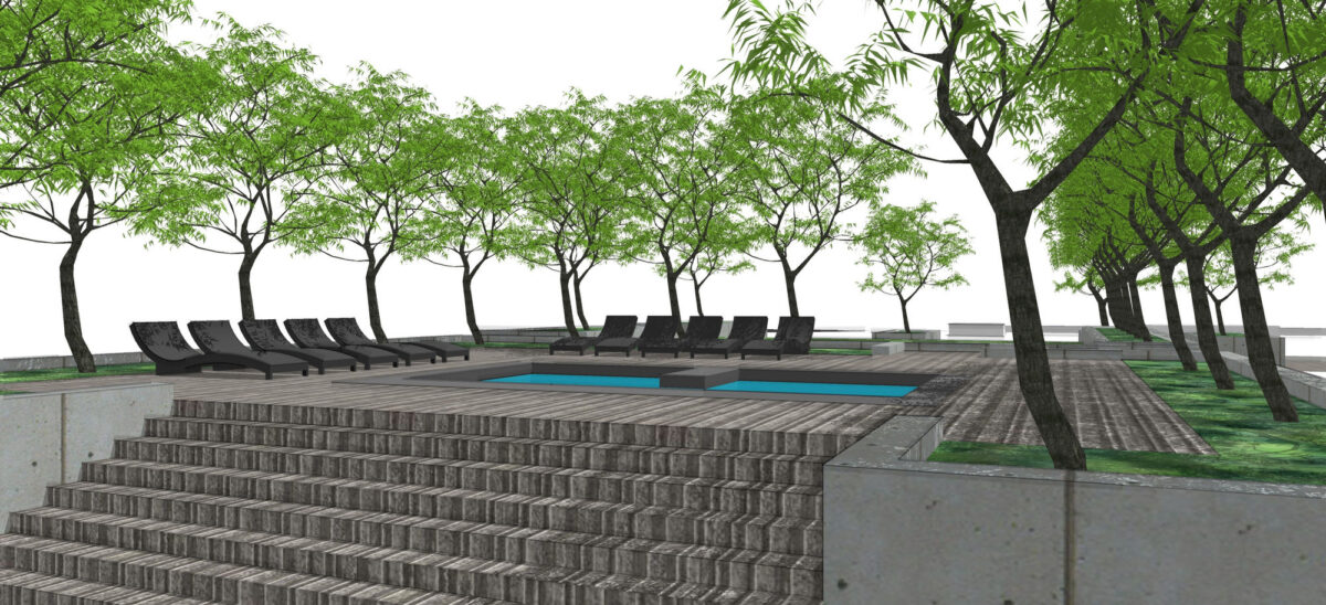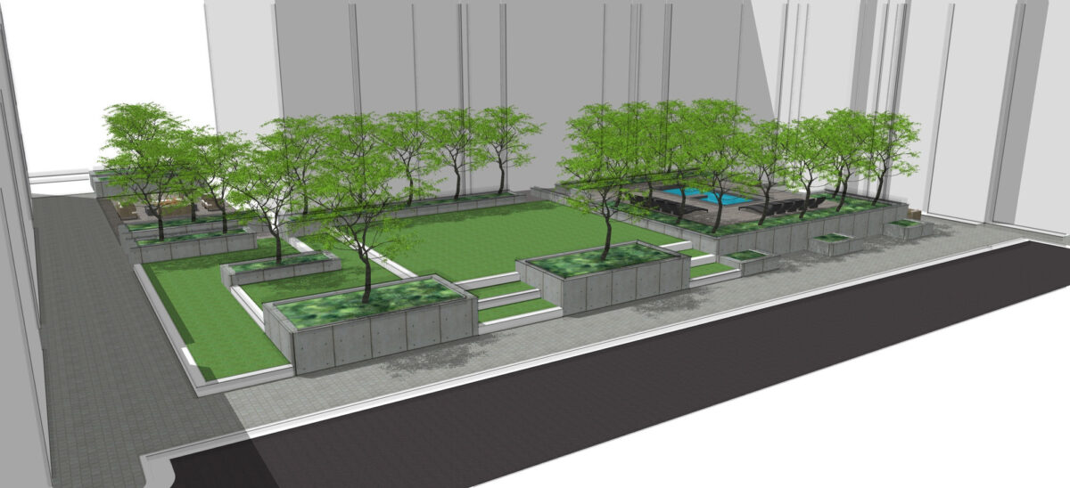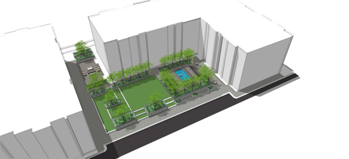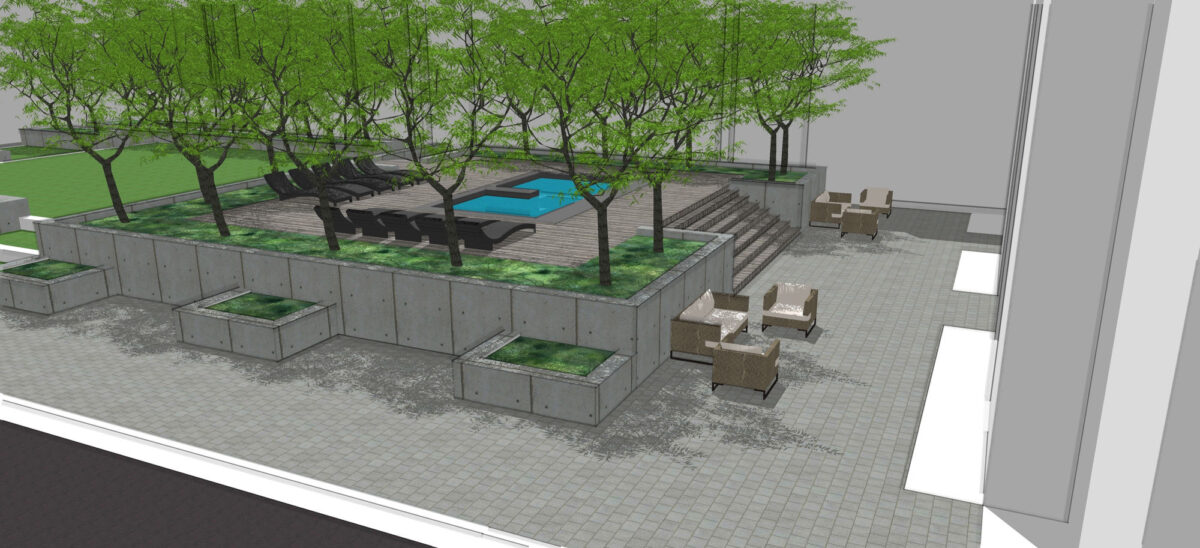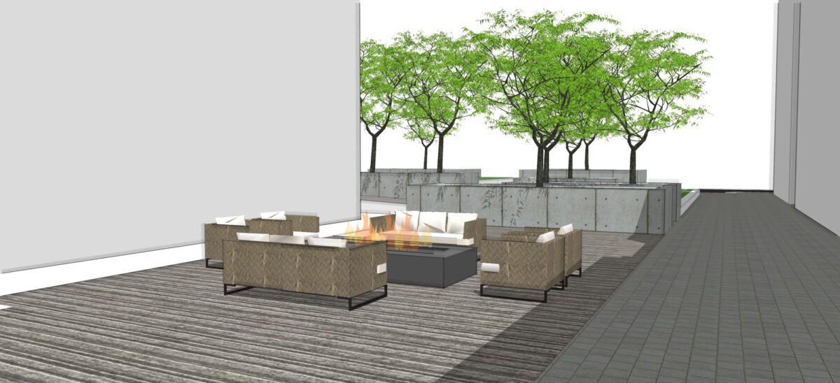 “A cool feature is a residential courtyard, hot tub, grass area, with a fire pit area and barbecue area,” Halladay said.