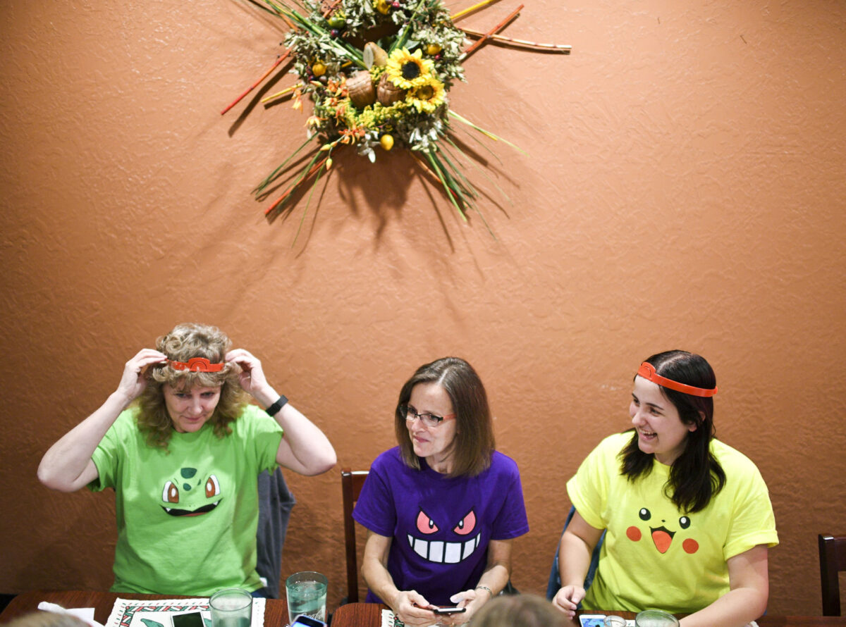 This multigenerational group of ladies were celebrating Anderson’s 76th birthday in full “Pokemon Go” style. In addition to the hand-painted shirts, this happy gaggle of mothers, daughters and granddaughters talked “Pokemon Go” levels and tips throughout dinner and well into their dessert of a Pokeball cake and cookies.