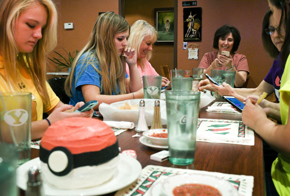 If you stepped into Joe Vera’s in Provo on Tuesday night, you would have noticed a group of ladies towards the back, phones in hand, laughing and giggling like school girls. Looking closer, you might have realized they all had unique Pokemon character shirts, and their phones were all tuned to the “Pokemon Go” app.