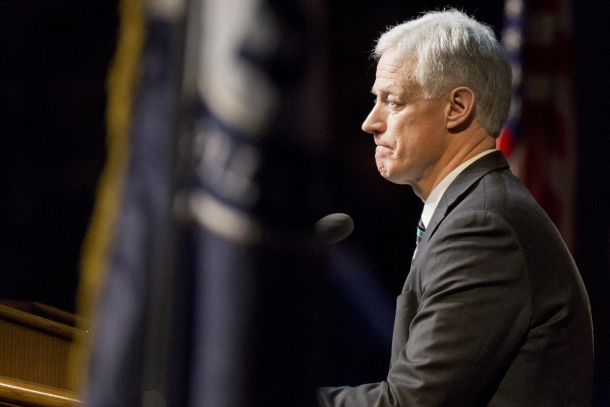 BYU President Kevin J Worthen pauses while speaking about an attempted suicide on campus during the introduction for Elder David A. Bednar's devotional at the Marriott Center on Tuesday, Dec. 4, 2018, in Provo.