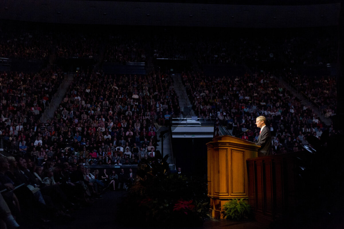 Elder David A. Bednar, a member of the Quorum of the Twelve Apostles in The Church of Jesus Christ of Latter-day Saints, gives a devotional at the Marriott Center on Tuesday, Dec. 4, 2018, in Provo.