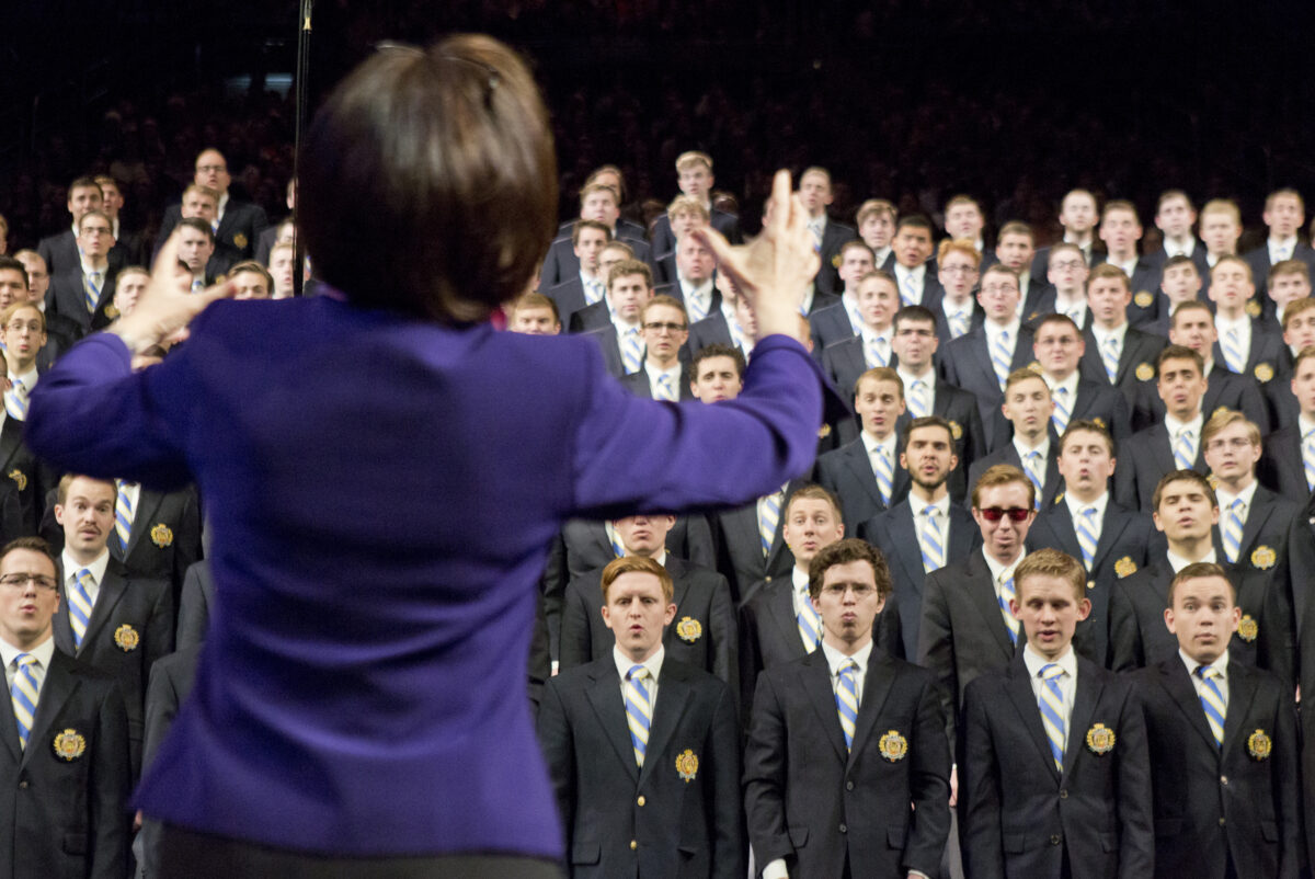 The Brigham Young University's Men Chorus performs during Elder David A. Bednar's devotional at the Marriott Center on Tuesday, Dec. 4, 2018, in Provo.