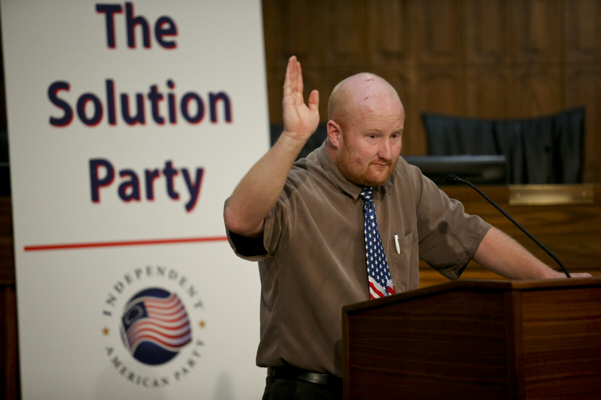 The room was sparse but the enthusiasm high as members of the Independent American Party of Utah met for a second-half continuation of their convention that began in April.