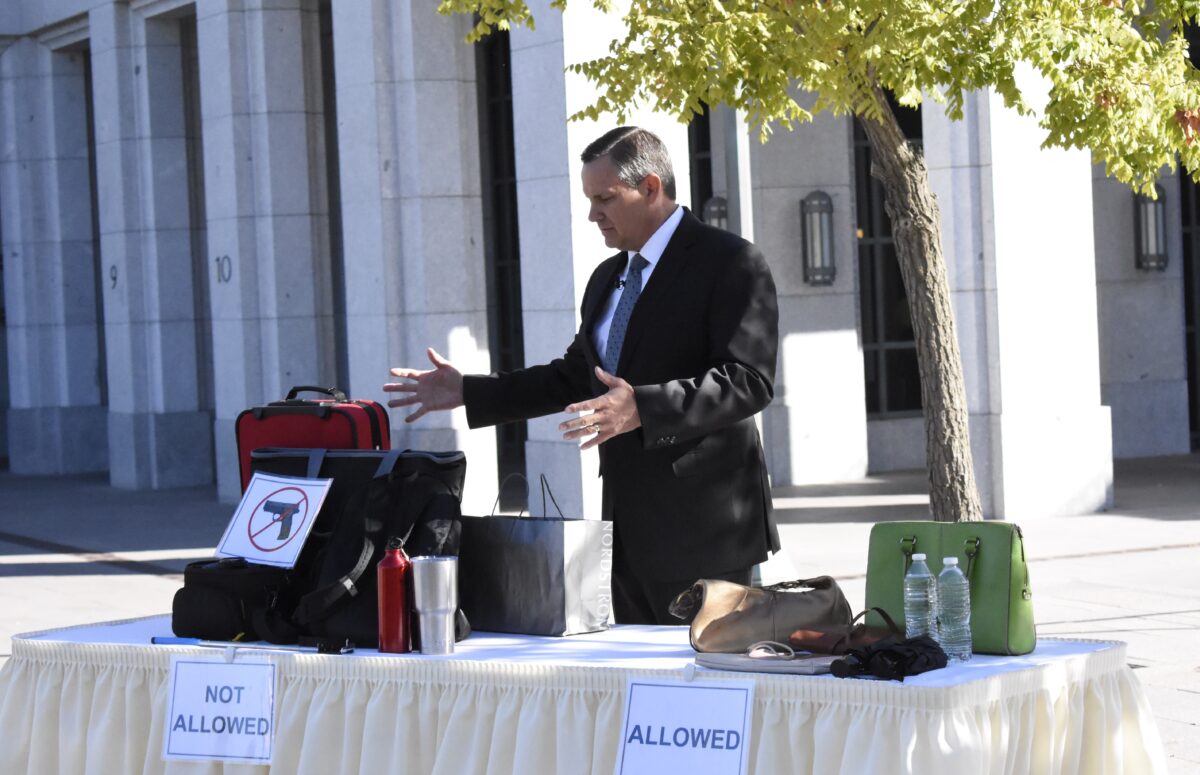 Members of the event services for the LDS Conference Center in Salt Lake City held a press conference Friday morning to announce new limitations on what can be brought into the center during sessions of general conference.