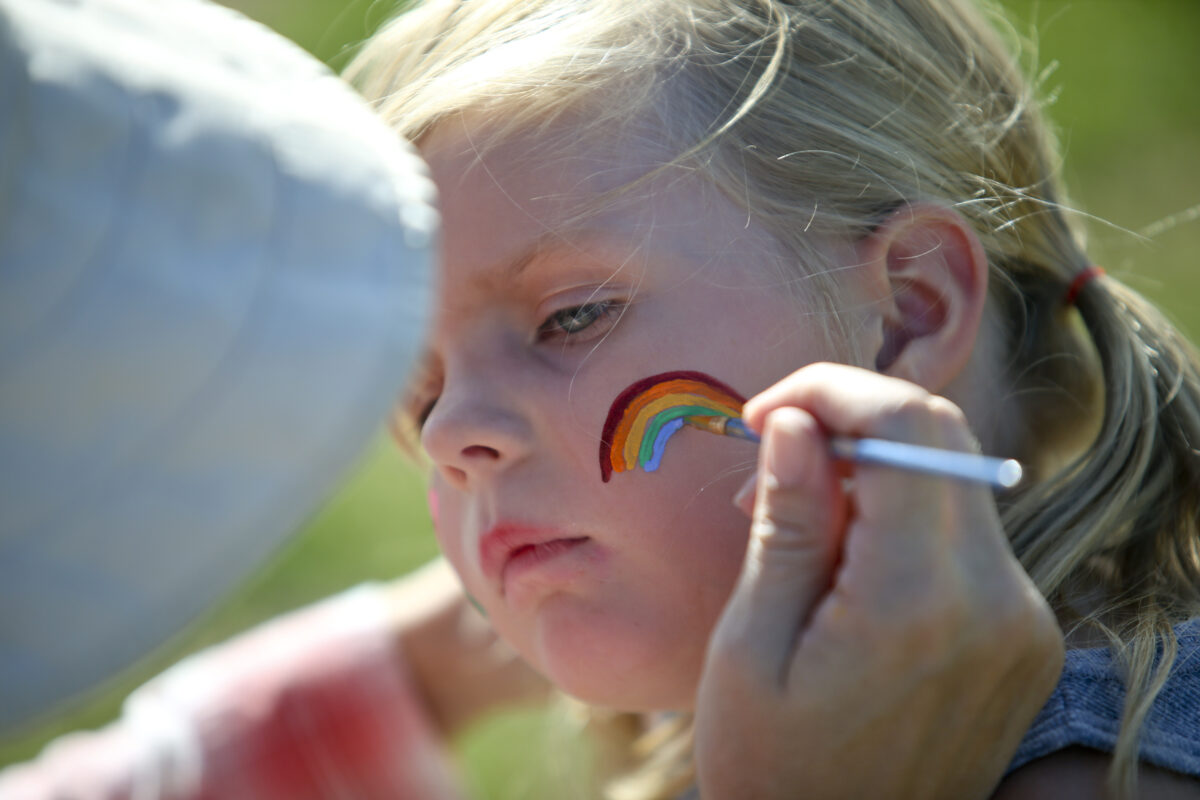 A family friend created much of the artwork, and a cousin drew up the corn fairy mascot. A family friend built a barrel train for kids to ride in.