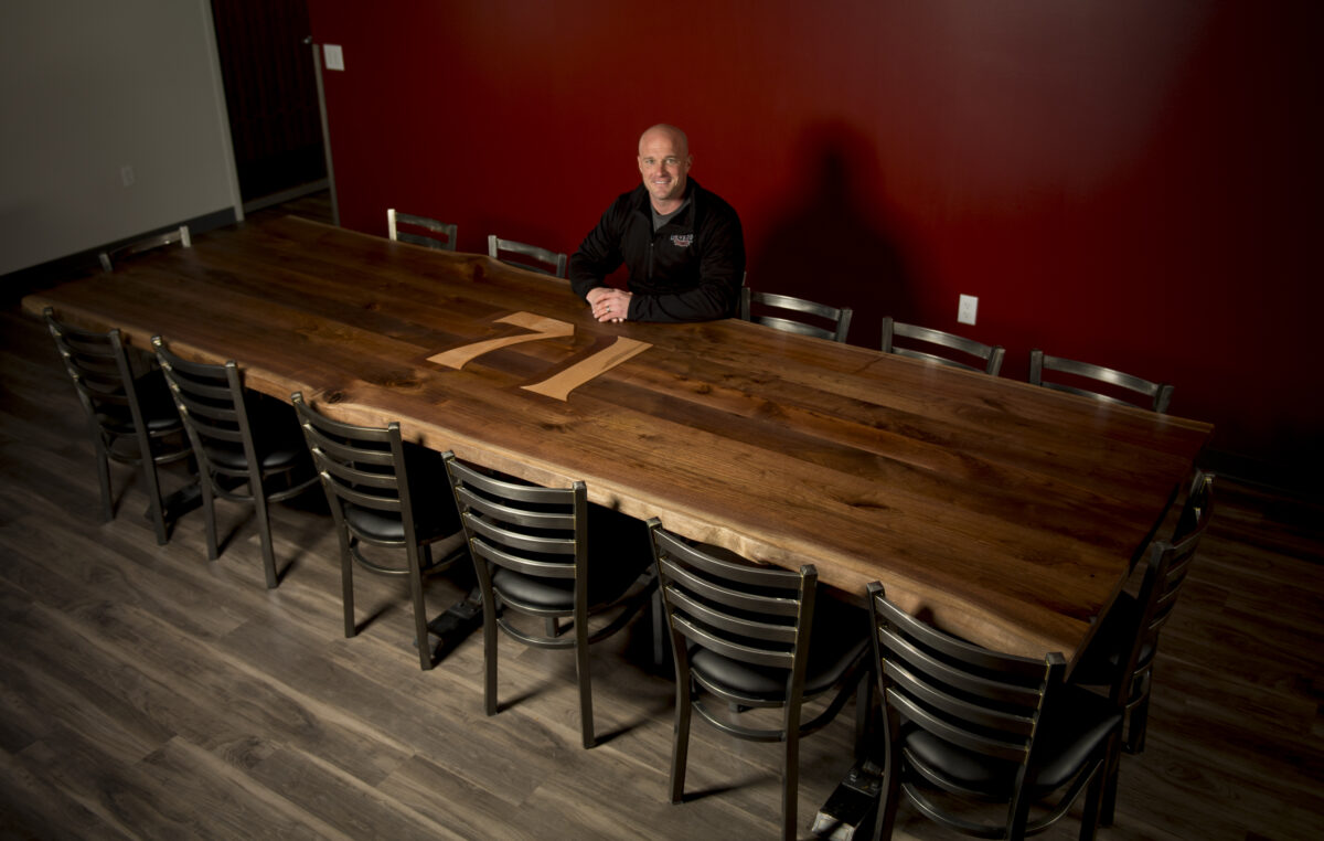 “A kitchen table is one of the most important pieces of furniture of a fire service,” said Kyle Hardy, firefighter. “We use it to socialize, have meetings, talk about our families.” Hardy, who enjoys woodworking, said that Chief Dave Thomas approached him a few months ago and asked him if he would like to build something that would last throughout the lifetime of the new station.