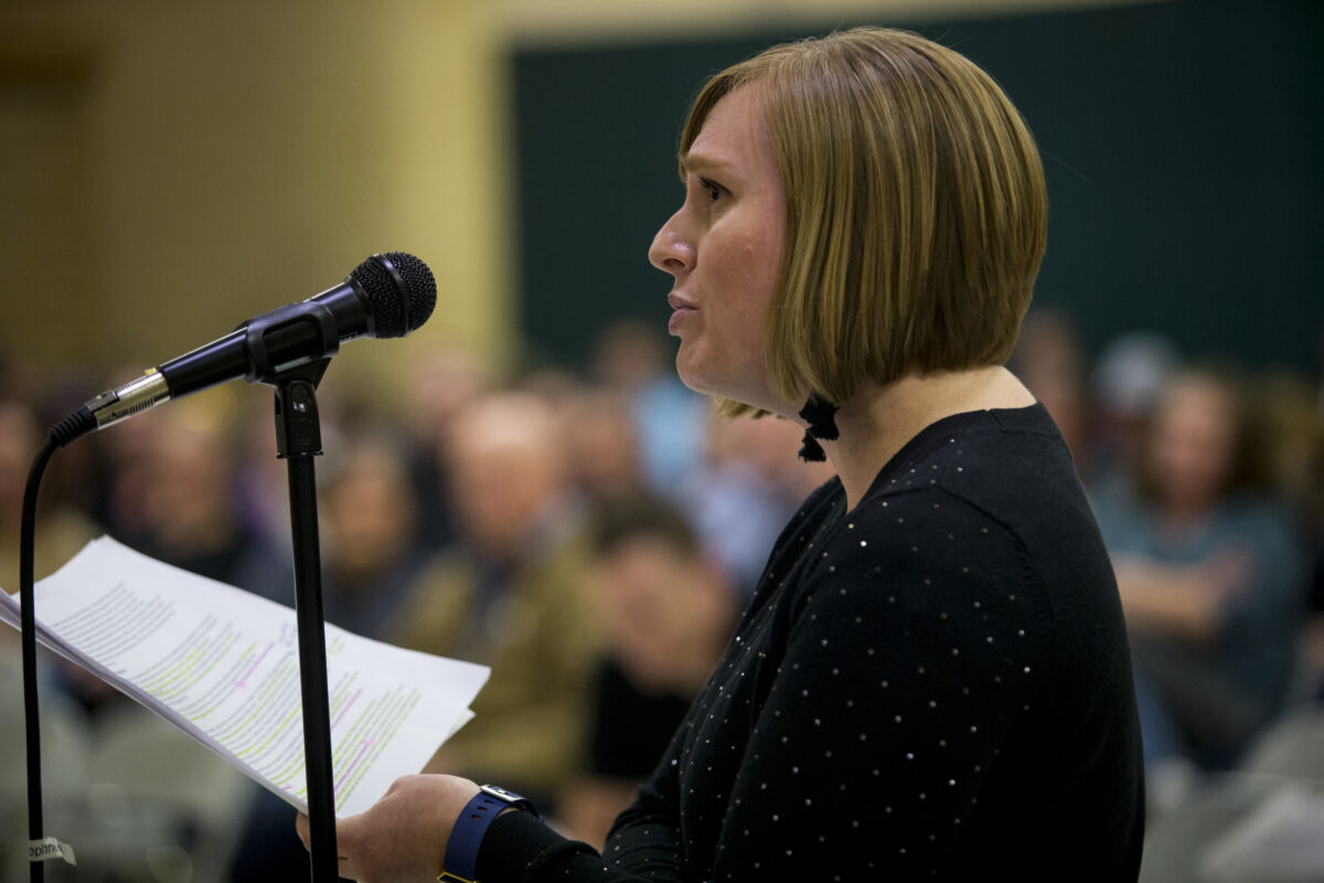 Sara Hacken, a member of the school board, said she’d read emails and taken notes on the different points that have been made. She was not in favor of Option A.