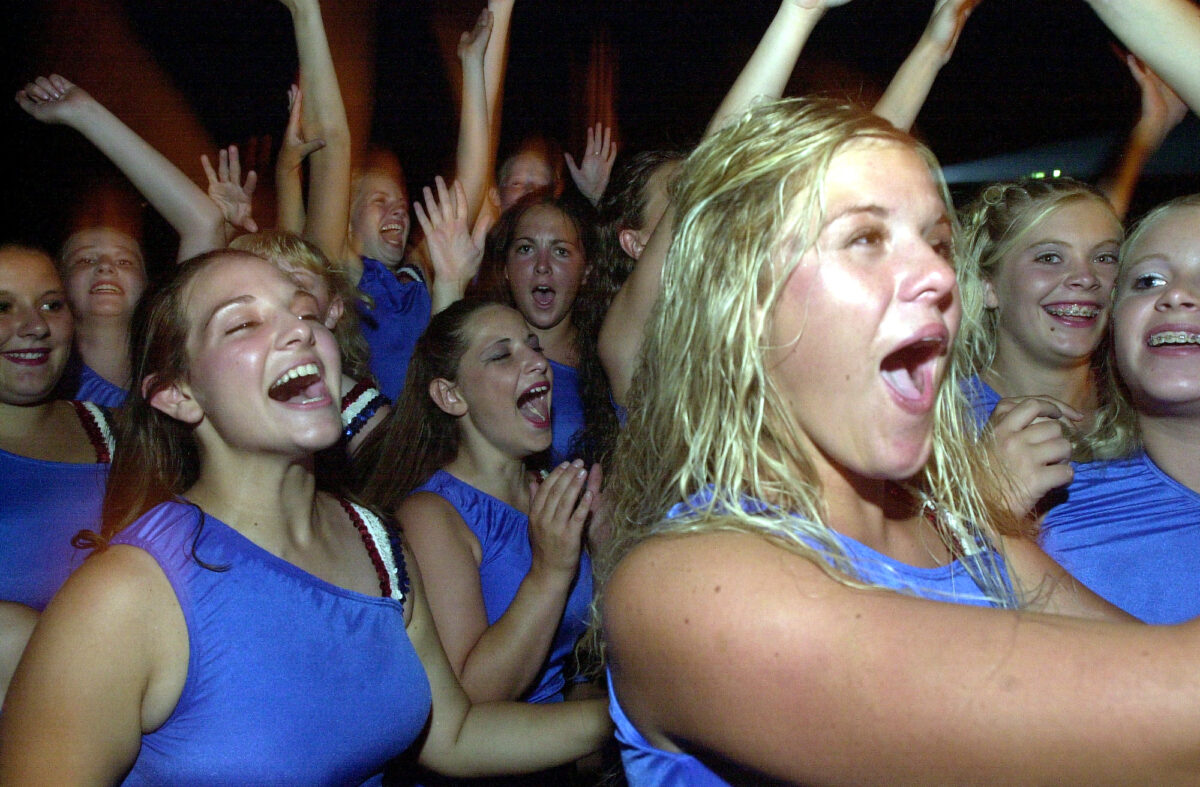 JERONIMO NISA/Daily Herald Stadium of Fire Dancers cheer Corbin Bleu, one of the performers at the Stadium of Fire, Wednesday, July 4, 2007.