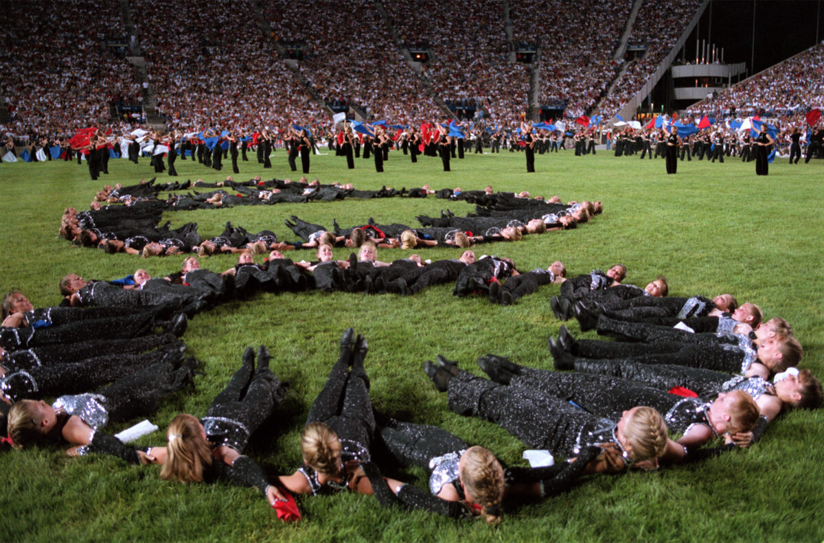 The Stadium of Fire Dancers perform for the sold-out audience at the BYU stadium on 7/5/97. Photo/Marc Lester