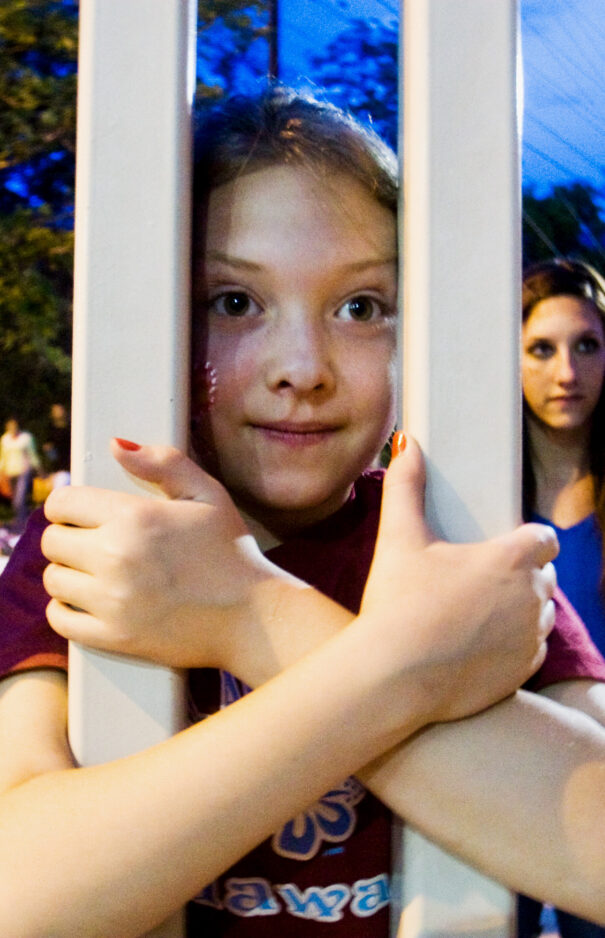 Jessica Butler, 8, of Orem watches the Jonas Brothers, during their Stadium of Fire performance, through the fence of the stadium, on Friday, July 4th. LANCE BOOTH/Daily Herald